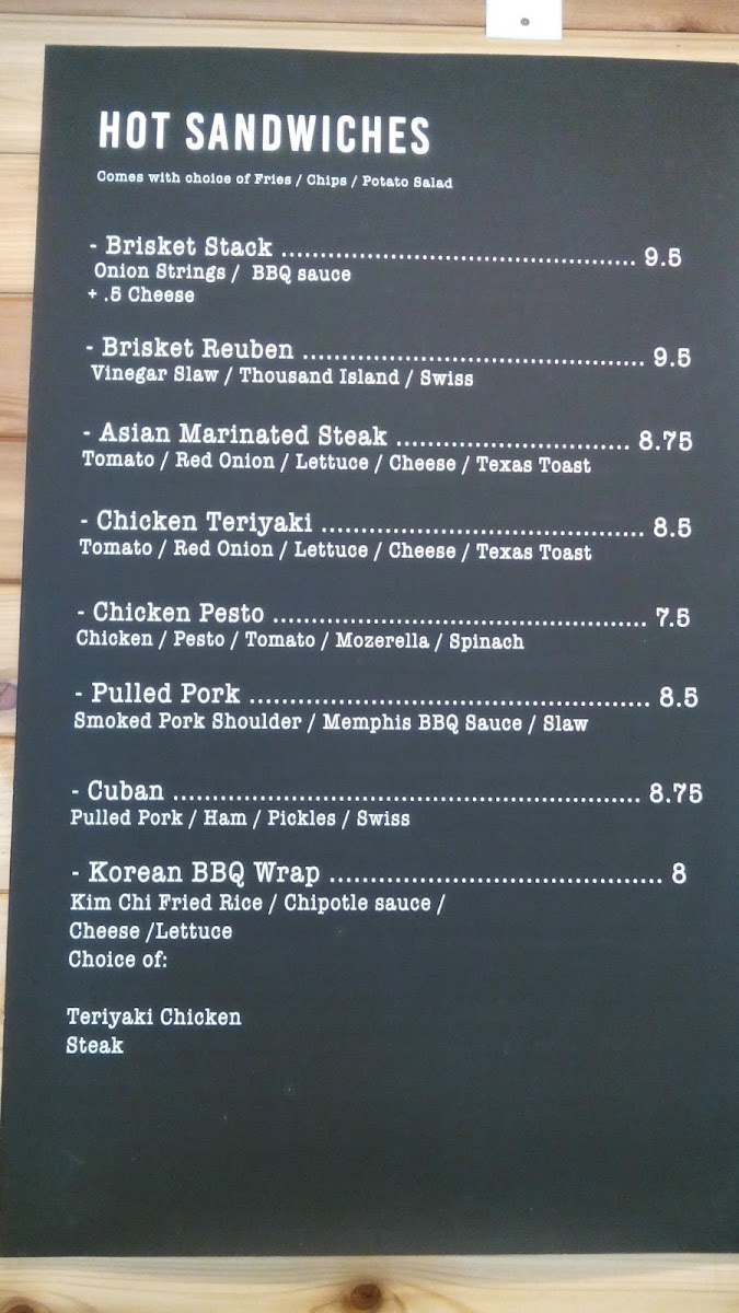 Grilled chicken, bacon, avocado, lettuce, tomato, onion, was topped with teriyaki sauce. (Choice of french fries / country potatoes or Salad and comes with our special spread)
